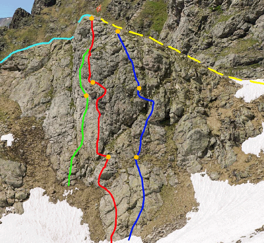 Der Grossteil der Routen befindet sich im Schwierigkeitsgrad 3c/4a.