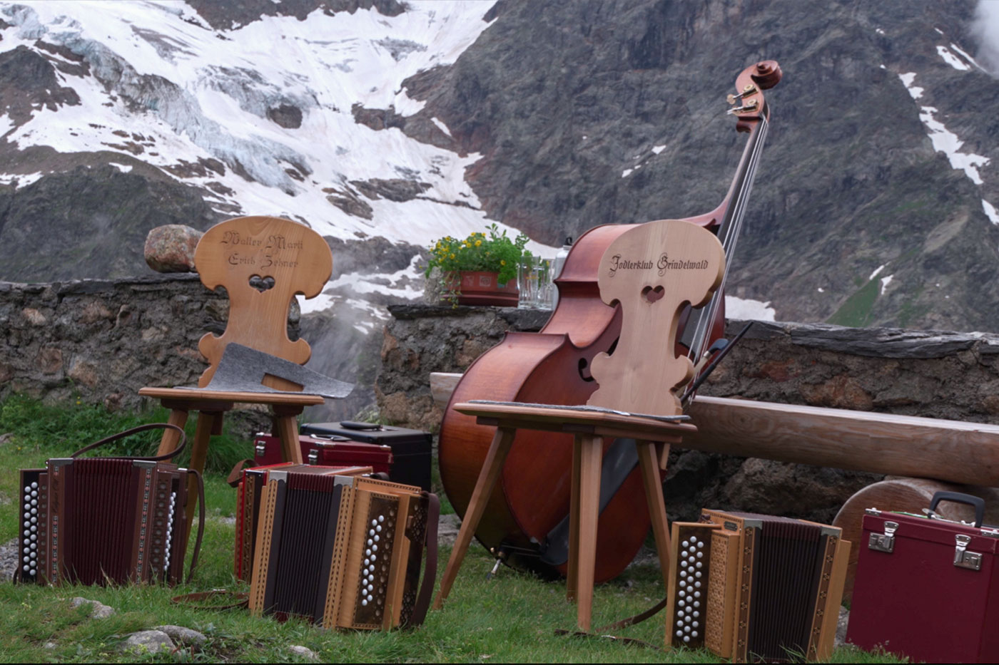 Weil der Heli etwas Verspätung hat, geht's bereits im Loichbiel los. Als wär's ein Kinderspiel, tanzen die flinken Finger über die schwarz-weissen Knöpfe und heimatliche Klänge machen Lust auf mehr. Das "DreierDuo" lässt sich denn auch nicht lumpen und kaum angekommen auf der Hütte, folgt Tanz um Tanz bis in die Nacht hinein.