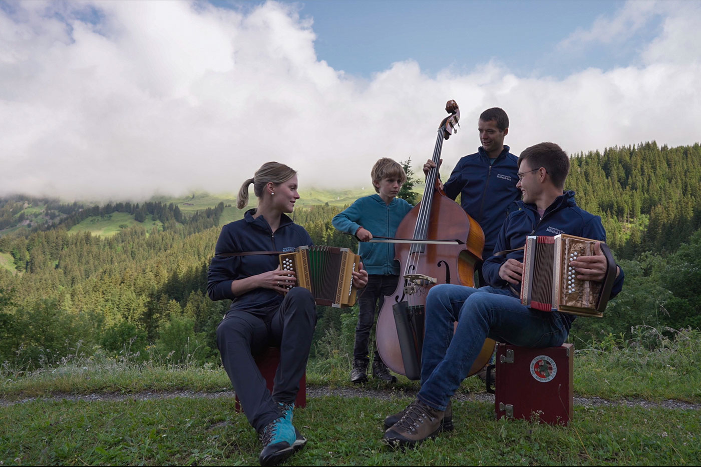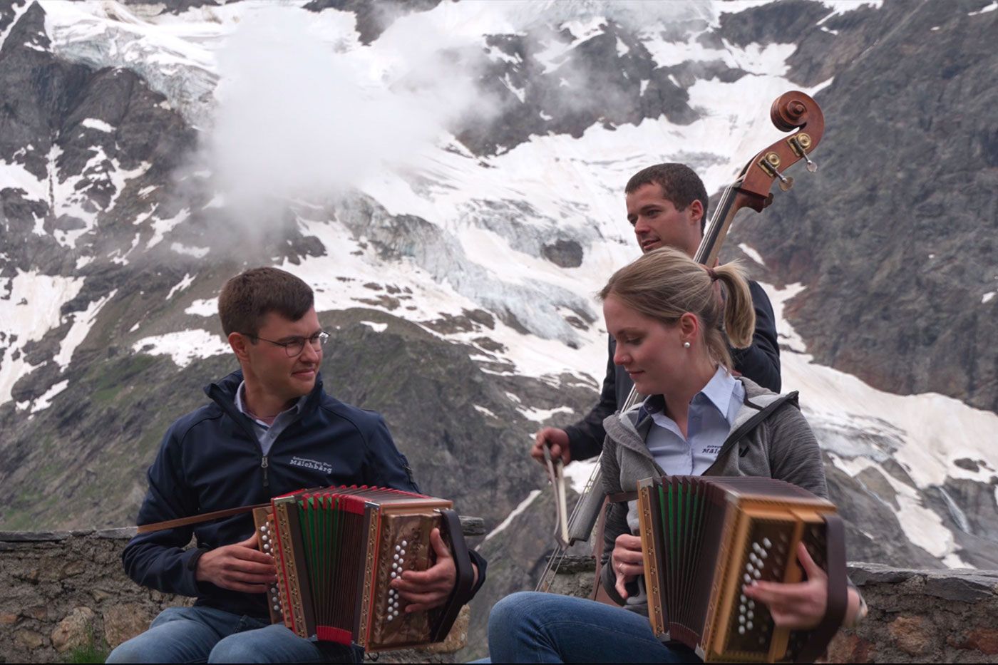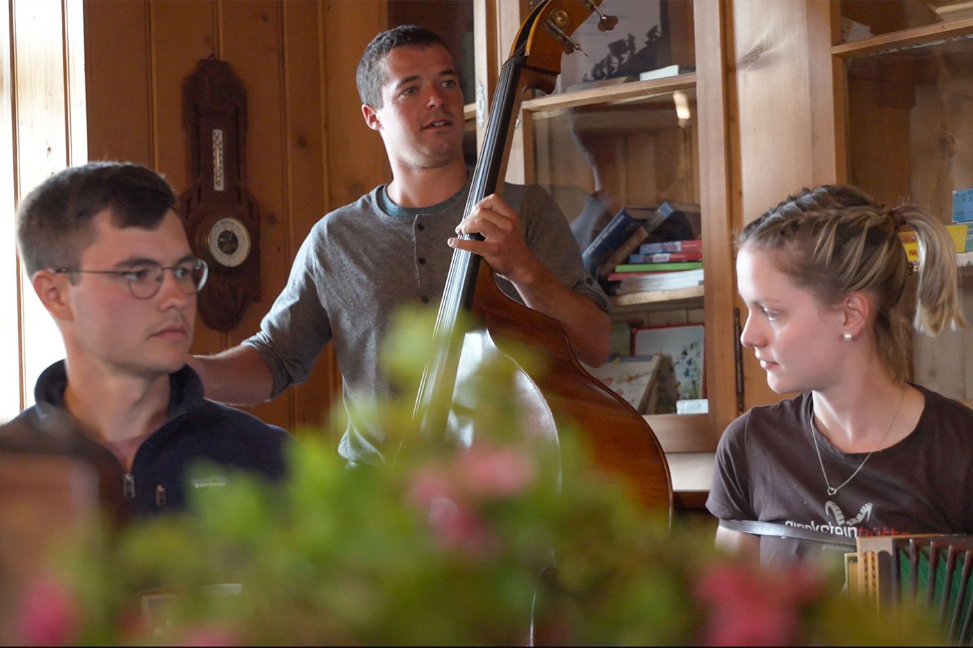Rebecca Iten verbringt mit uns die Sommersaison als Hüttenhilfe und da liegt es förmlich auf der Hand, dass sie mit ihren zwei Musikantenkollegen auch einmal aufspielt mit lüpfiger Innerschwyzer Musik.