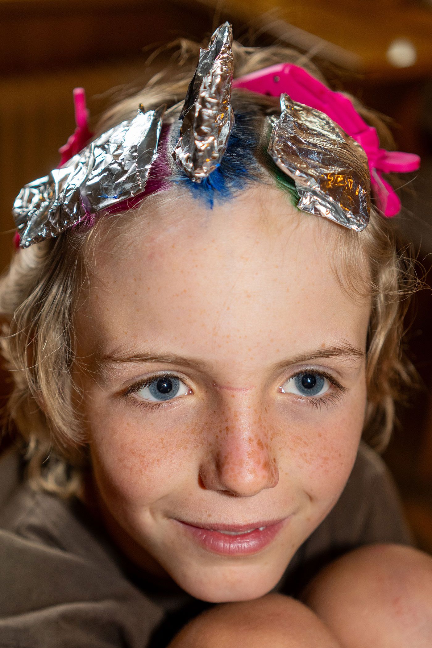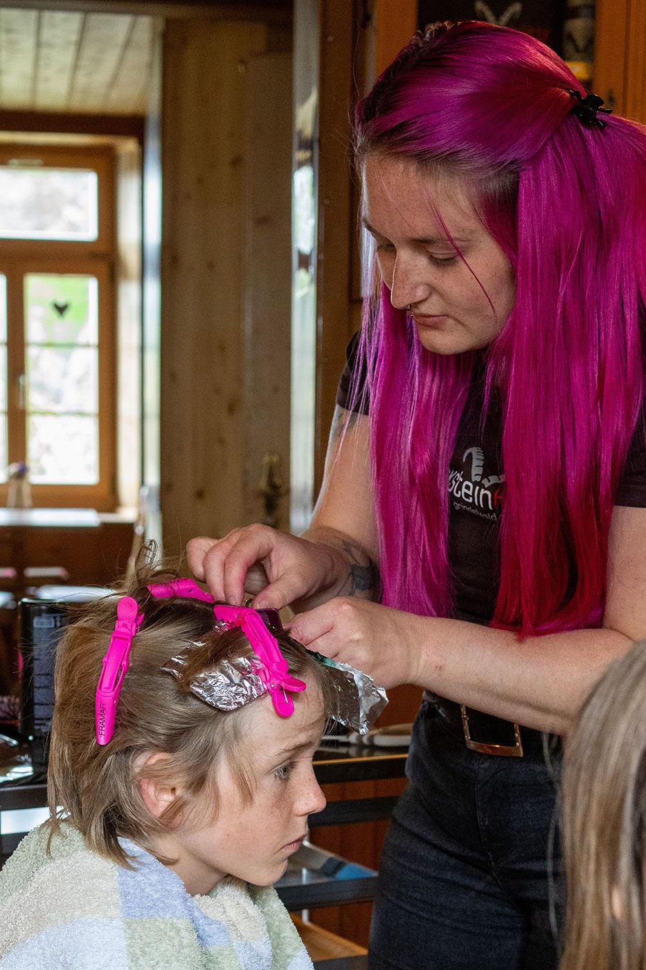Gewisse Handfertigkeiten werden immer und überall geschätzt und dazu gehört bestimmt auch ein gekonnter Haarschnitt. Zur Kunst wird es dann, wenn das notwendige Übel mit Leidenschaft zelebriert wird! Genau dafür leuchten Jasmin's Augen genauso wie ihre bunte Haarpracht. Insbesondere unsere Kinder waren davon leicht zu begeistern und liessen sich künstlerisch verzaubern.